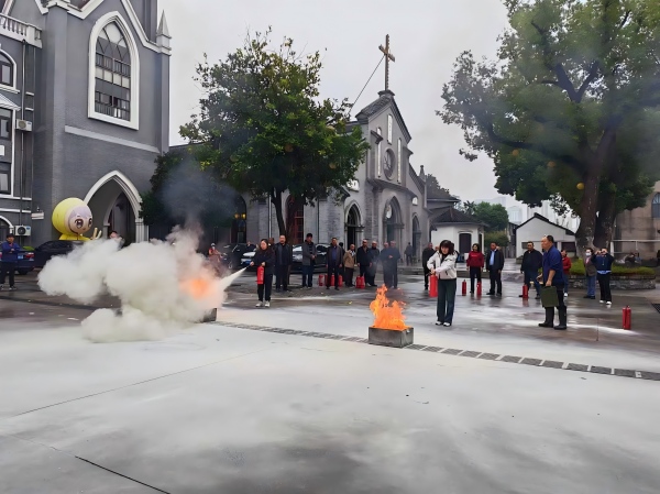 为响应2025年消防宣传月,贯彻落实省民宗委《关于开展全省宗教领域2025年消防宣传月活动的通知》要求,切实强化无锡天主教各堂区场所消防安全意识与应急处突能力,11月7日,无锡市天主教爱国会在市天主堂组织开展消防应急演练及消防安全培训。市爱国会在锡班子成员,神父、修女,各片区爱国小组负责人及教友代表等50余人参加培训。