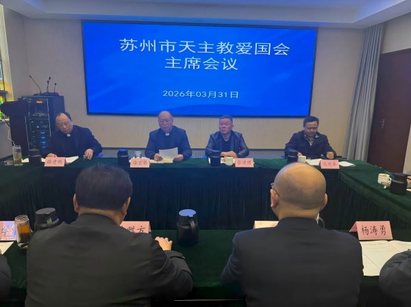 3月31日,苏州市天主教爱国会召开2026年第一季度主席会议,苏州教区徐宏根主教及市天主教爱国会秘书长以上人员参加会议,市天主教爱国会主席薛建刚神父主持会议。市民宗局副局长张建国、宗教二处有关领导出席会议。