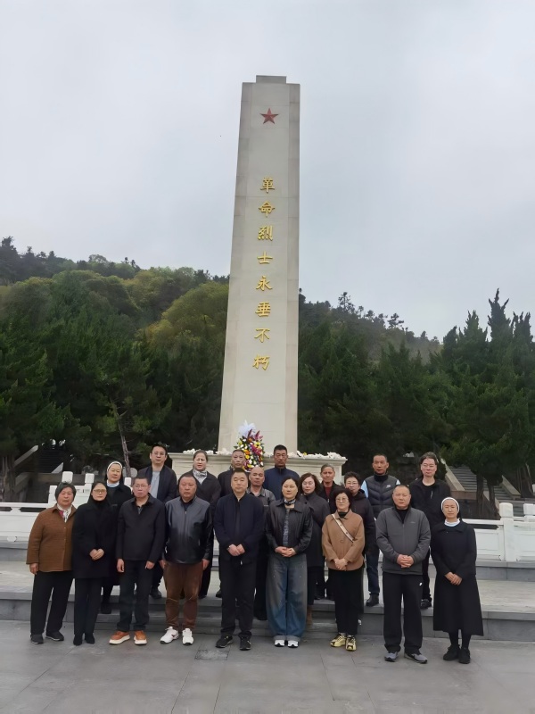 为深切缅怀革命先烈,厚植爱国爱教情怀,扎实推进“学法规、守戒律、重修为、树形象”主题教育落地见效,4月3日,无锡太湖天主堂主任司铎刘鸿典神父,带领堂区修女及堂管会成员一行16人,赴无锡市锡南烈士陵园开展清明祭扫活动。